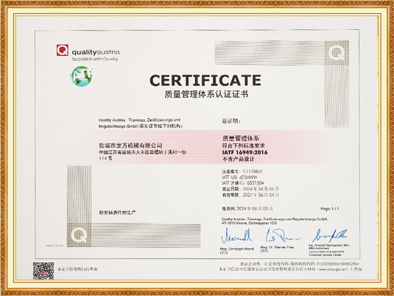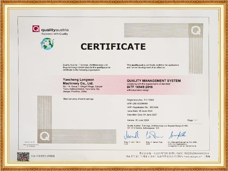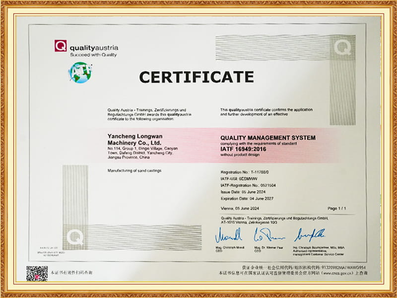 Bên cạnh đó, chúng tôi cũng có khả năng kiểm tra chất lượng của toàn bộ quá trình và có thiết bị kiểm tra hiệu suất vật liệu như máy quang phổ đọc trực tiếp phổ của Đức, máy kiểm tra độ bền kéo, máy kiểm tra độ cứng 3T Brinell, máy đo vận tốc Sonic, kính hiển vi kim loại, v.v.; Nó có một bộ hoàn chỉnh các thiết bị kiểm tra cát đúc như máy chế tạo mẫu SAC Hammer, máy kiểm tra cường độ thủy lực Swy, máy sàng lọc cát loại rung SSZ, máy sấy hồng ngoại đôi của SGS, v.v., và đã thiết lập một hệ thống hoàn chỉnh IATF 16949: 2016 để đảm bảo khả năng ổn định liên tục của chất lượng sản phẩm.